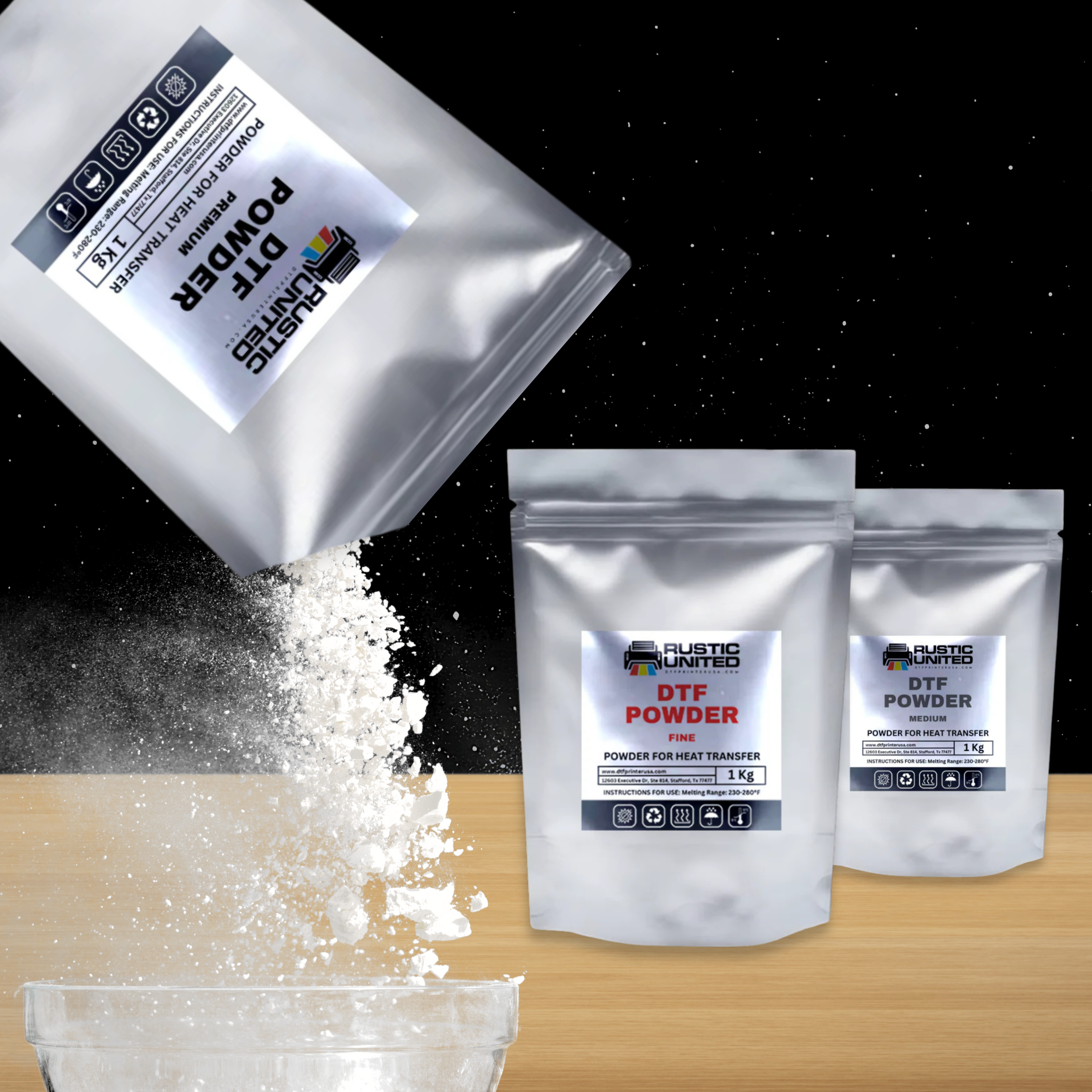 Hot-Melt Adhesive Powder – Applied after printing; it melts during the heat press process, binding the print to the fabric.